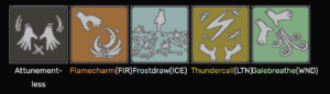 - Overview: Thundercall magic allows you to unleash fast and powerful electric attacks. Lightning-based spells tend to have high speed and mobility, striking enemies with rapid and electrifying damage. This attunement is ideal for players who enjoy hit-and-run tactics and fast-paced combat.
